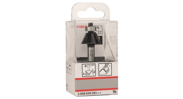 Fasefrezen voor fijne sierafschuiningen bij meubelsFase-/kantenfrezen 8 mm, D1 23,7 mm, B 5,5 mm, L 12 mm, G 54 mm, 25° 1