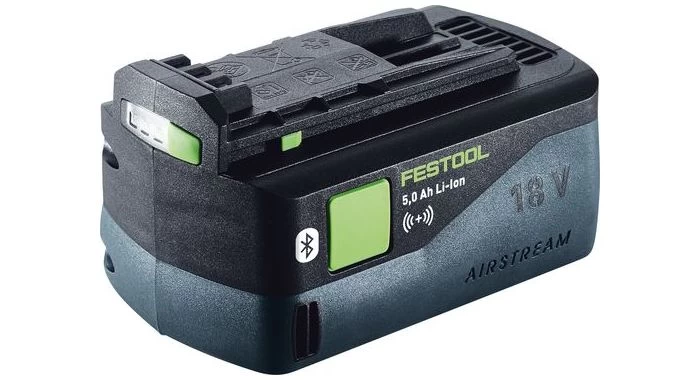 - Bluetooth® Lithium-Ionen (Li-Ion) accu met AIRSTREAM-functie voor alle Festool 18 V-accumachines (behalve ETSC 125, RTSC 400, DTSC 400, CTC SYS)