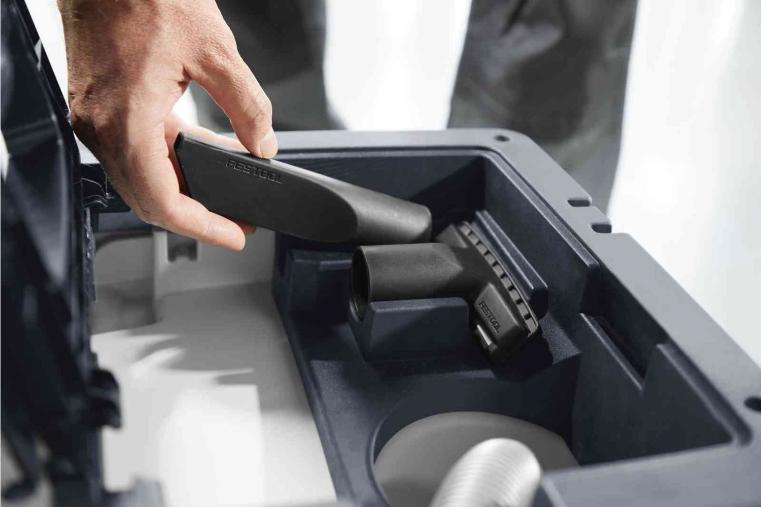Reinigingsaccessoires al in de leveringsomvang inbegrepen en in de mobiele stofzuiger opgeborgen